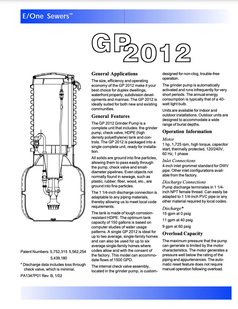 Model 2012 Grinder Pump Drawings